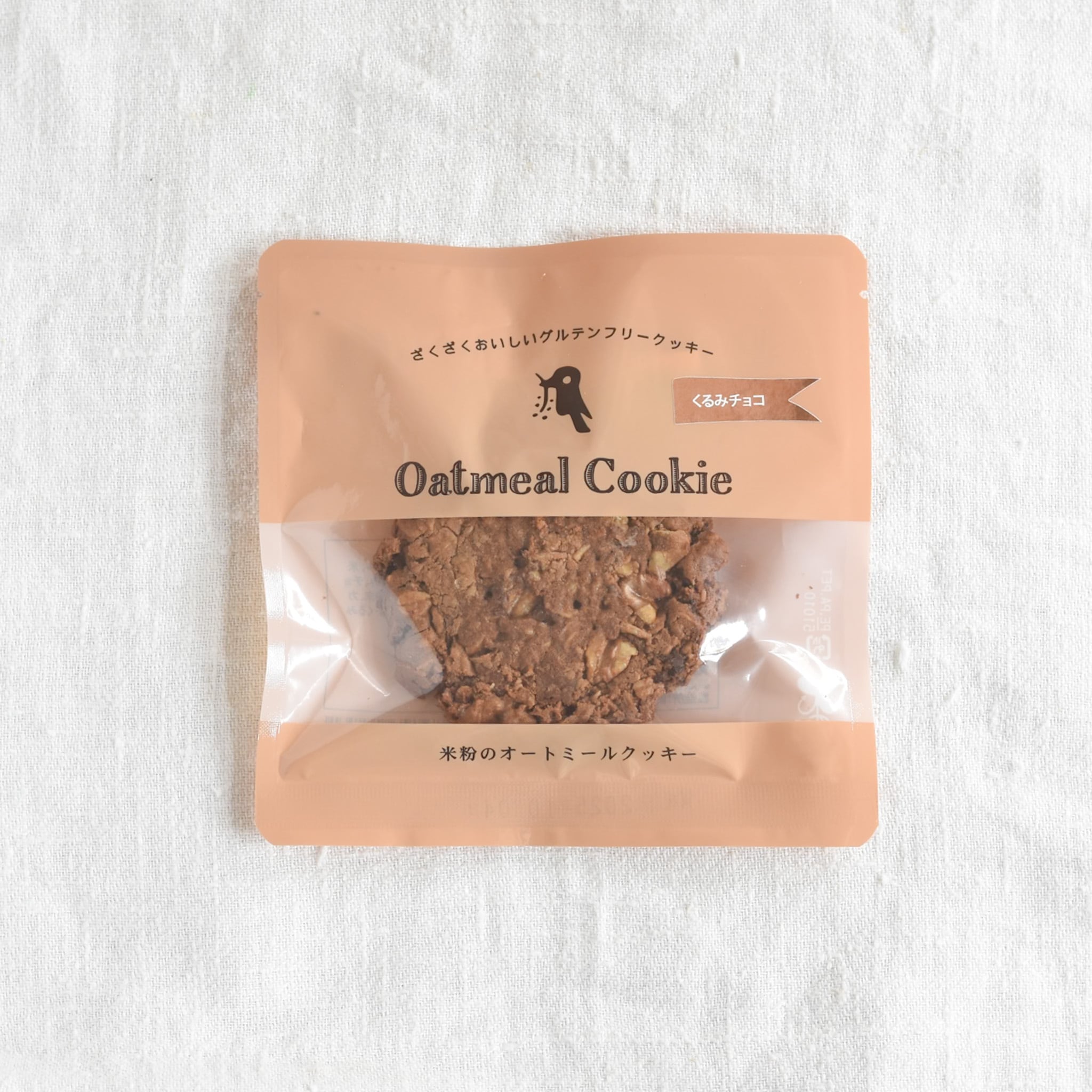 オートミール(カナダ製造)、ココナッツオイル、米粉、バターナッツペースト、黒砂糖、粗製糖、鶏卵、ココナッツ、くるみ、チョコレートチップ(カカオマス・砂糖・ココアバター)、焙煎オーツ麦粉末、カカオパウダー、サイリウム粉末、塩/膨張剤、レシチン(一部に卵・くるみ・乳成分・大豆を含む)