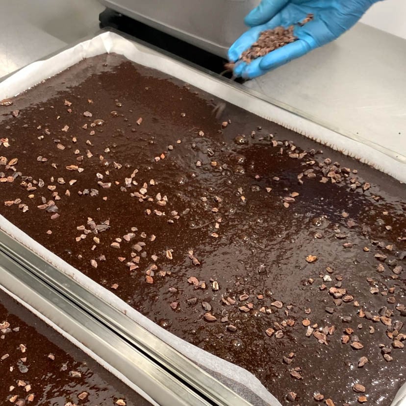 米粉のブラウニーは、1つずつ手作業で作っています。