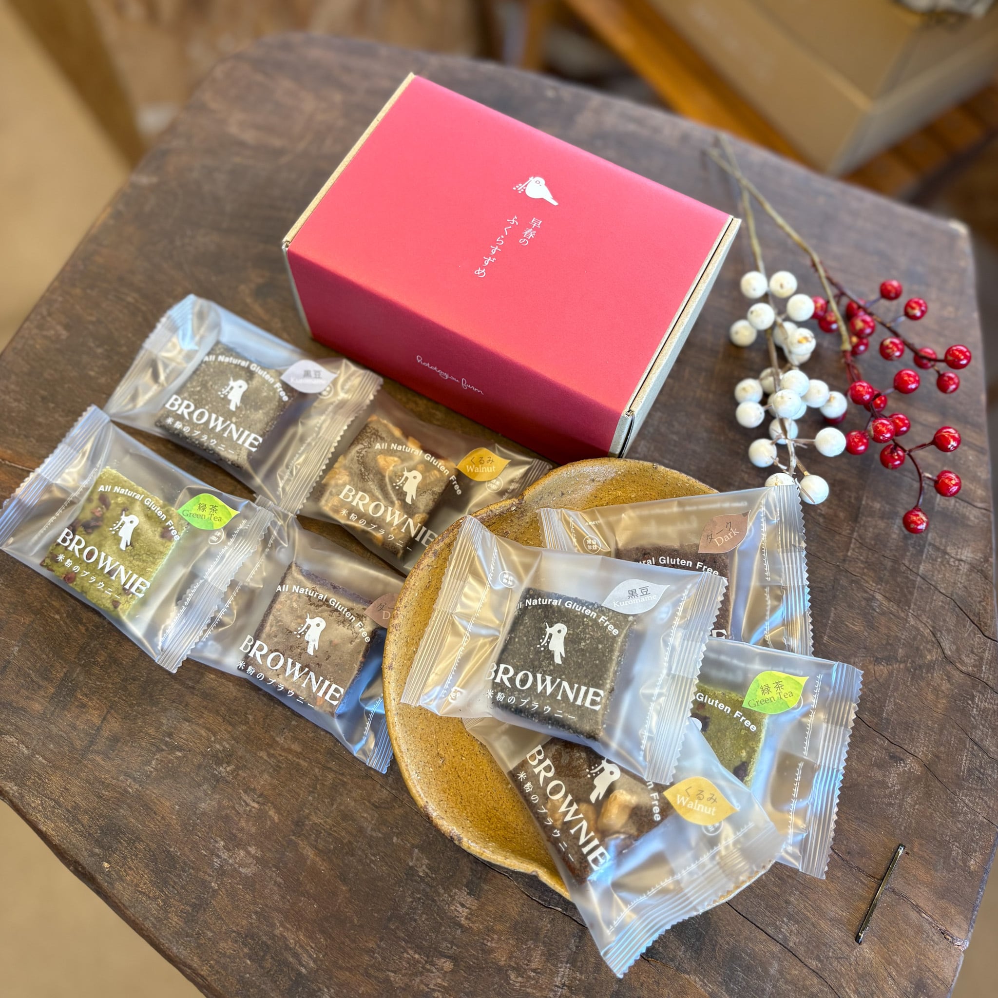 和風フレーバーの米粉のブラウニー、4種8個入りです。