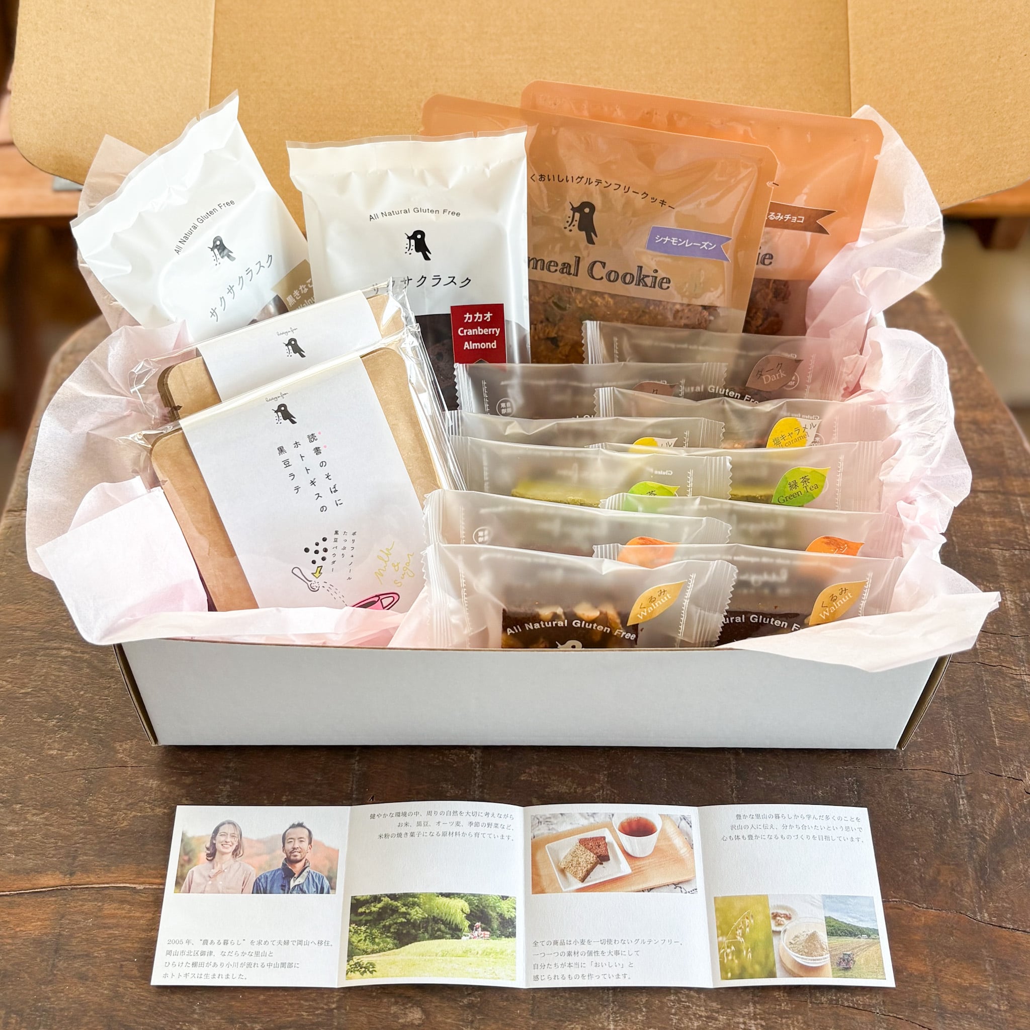 ホトトギスの美味しい焼き菓子と飲み物が1箱に集まった華やかなセットです。